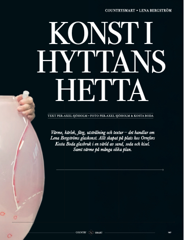 Värme, kärlek, färg, utstrålning och textur – det handlar om Lena Bergströms glaskonst. Allt skapat på plats hos Orrefors Kosta Boda glasbruk i en värld av sand, soda och kisel. Samt värme på många olika plan.