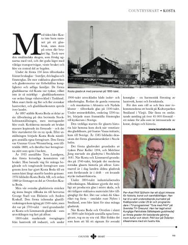 År 1935 anställdes Tyra Lundgren, den första kvinnliga konstnären vid bruket. Hon banade väg för många be- gåvade och tongivande formgivare som genom åren har gjort Kosta Boda till ett namn känt långt utanför landets gränser. 1976 bildades Kosta Boda AB, och sedan 1989 är företaget en del av Orrefors Kos- ta Boda.