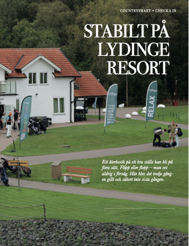 COUNTRYSMART • CHECKA IN STABILT PÅ LYDINGE RESORT Ett återbesök på ett bra ställe kan bli på flera sätt. Flipp eller flopp – man vet aldrig i förväg. Här blev det tredje gång- en gillt och säkert inte sista gången. COUNTRY SMART 129