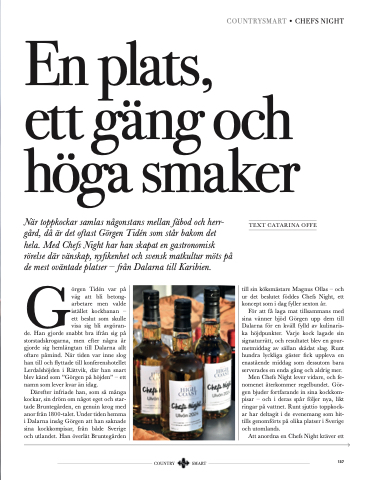 Därefter infriade han, som så många kockar, sin dröm om något eget och star- tade Bruntegården, en genuin krog med anor från 1800-talet. Under tiden hemma i Dalarna insåg Görgen att han saknade sina kockkompisar, från både Sverige och utlandet. Han överlät Bruntegården