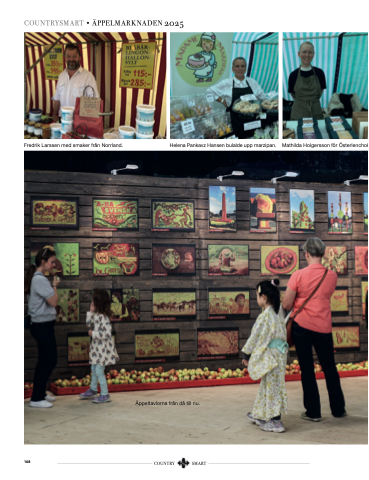 COUNTRYSMART • ÄPPELMARKNADEN 2025 Fredrik Larssen med smaker från Norrland. Helena Pankavz Hansen bulalde upp marzipan. Mathilda Holgersson för Österlencho 168 COUNTRY SMART Äppeltavlorna från då till nu. k
