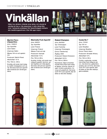 Kryddig, fruktig, söt smak med inslag av apelsin, hjortron, syl- tad ingefära och röda äpplen. Serveras väl kyld som aperitif eller används som drinkingre- diens.