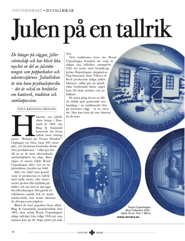 De hänger på väggar, fyller vitrinskåp och har blivit lika mycket en del av julstäm- ningen som pepparkakor och adventsstjärnor. Jultallriken är inte bara prydnadsporslin – det är också en berättelse om hantverk, tradition och samlarpassion.