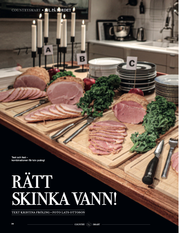 COUNTRYSMART • JUL PÅ BORDET Test och fest – kombinationen får tolv poäng! RÄTT SKINKA VANN! TEXT KRISTINA FRÖLING • FOTO LATS OTTOSON 34 34 COUNTRY SMART COUNTRY SMART