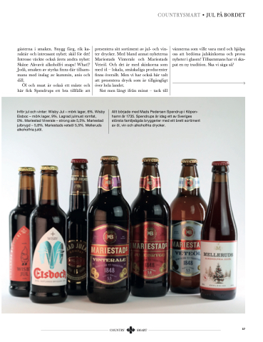presentera sitt sortiment av jul- och vin- ter drycker. Med bland annat nyheterna Mariestads Vinterale och Mariestads Veteöl. Och det är med skinkorna som med öl – lokala, småskaliga producenter finns överallt. Men vi har också här valt att presentera dryck som är tillgängligt över hela landet.