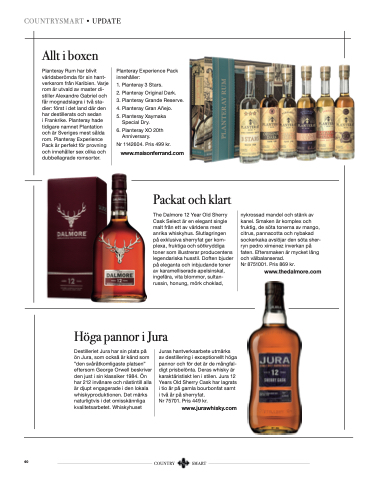 Planteray Rum har blivit världsberömda för sin hant- verksrom från Karibien. Varje rom är utvald av master di- stiller Alexandre Gabriel och får mognadslagra i två sta- dier: först i det land där den har destillerats och sedan
