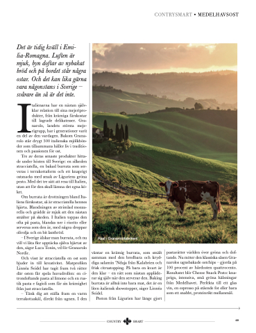 Tre av deras senaste produkter hitta- de under hösten till Sverige: en silkeslen stracciatella, en bakad burrata som ser- veras i terrakottaform och ett knaprigt ostsnacks med smak av Liguriens gröna pesto. Med det tre sätt att resa till Italien, utan att för den skull lämna det egna kö- ket.
