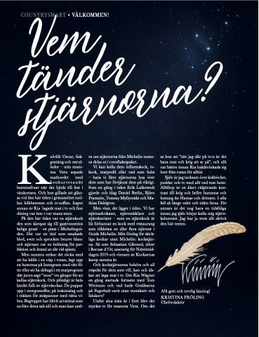 matbordet med – bara vi låter stjärnorna lysa över Självärjagtacksamöverkokböcker, konkurrerande dem som har förtjänat dem på riktigt. poddar och tv med allt vad mat heter. hemmafruar när det bjöds till fest i Som en gång i tiden Erik Lallerstedt Alltihop är en klart välgörande kon- vänkretsen. Och hon gillade att glän- gjorde och idag Daniel Berlin, Björn trast till krig och hellre hummus och