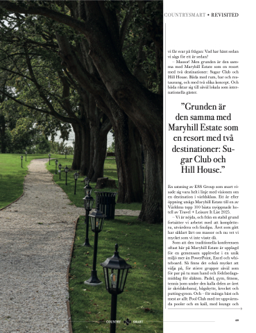 En satsning av ESS Group som snart vi- sade sig vara helt i linje med visionen om en destination i världsklass. Ett år efter öppning utsågs Maryhill Estate till en av Världens topp 100 bästa nyöppnade ho- tell av Travel + Leisure It List 2025.