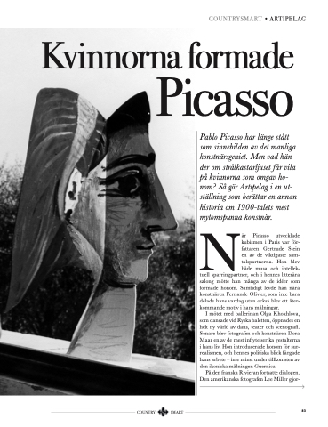 Pablo Picasso har länge stått som sinnebilden av det manliga konstnärsgeniet. Men vad hän- der om strålkastarljuset får vila på kvinnorna som omgav ho- nom? Så gör Artipelag i en ut- ställning som berättar en annan historia om 1900-talets mest Nmytomspunna konstnär.