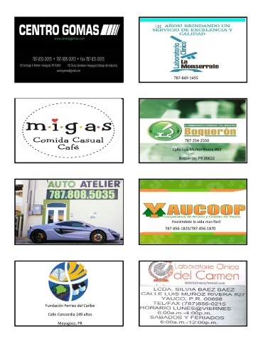 21 787-849-1495 787-254-2550 Calle Luis Muñoz Rivera #63 Boquerón, PR 00622 Haciéndote la vida mas fácil 787-856-1820/787-856-1870 Fundación Ferries del Caribe Calle Concordia 249 altos Mayagüez, PR
