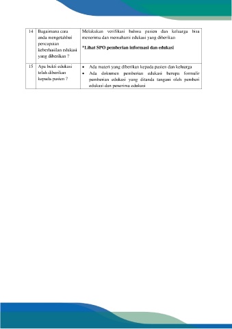 14 Bagaimana cara Melakukan verifikasi bahwa pasien dan keluarga bisa