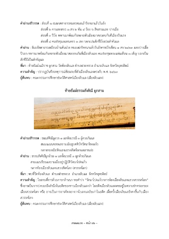ความสำคัญ : ใบลานที่จารด้วยภาษาล้านนา พบคำว่า “วัดนาโปงแก้วกลางท้องเมืองลับแลงแขวงสวรรคโลก”
