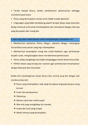 • Terlalu banyak bicara, terlalu mendominasi pembicaraan sehingga