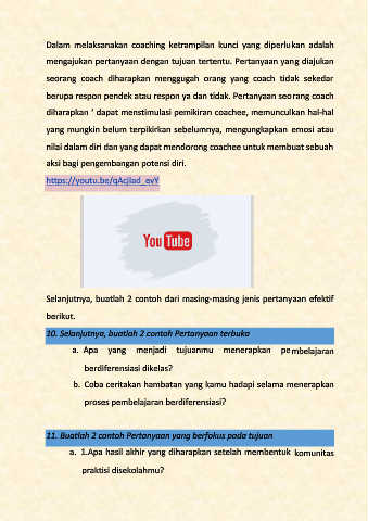 berupa respon pendek atau respon ya dan tidak. Pertanyaan seorang coach