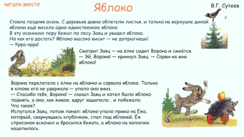 — Спасибо тебе, Ворона! — сказал Заяц и хотел было яблоко