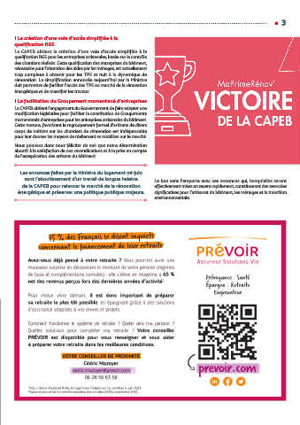 de la CAPEB pour relancer le marché de la rénovation effectivement mises en œuvre rapidement, constitueront des avancées