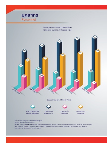 หมายเหตุ : รวมอาจารยที่ลาศึกษาตอ ฝกอบรม ดูงาน หรือลาปฏิบัติงานวิจัย 16 คน (อาจารย 14 คน ผูชวยศาสตราจารย 2 คน) ณ วันที่ 30 กันยายน ของทุกป
