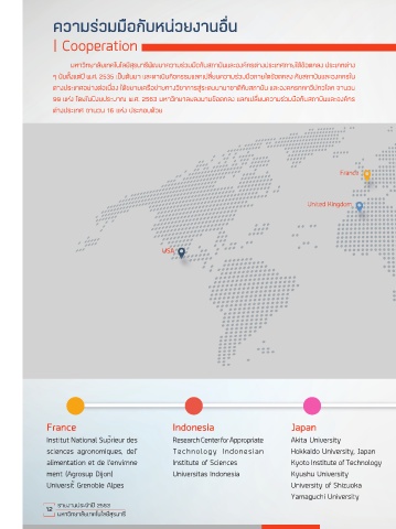 ๆ นบตังแตป พ.ศ. 2535 เปนตนมา และดาเนนกจกรรมแลกเปลียนความรวมมอภายใตขอตกลง กบสถาบนและองคกรใน under agreements since 1992. Presently SUT’s collaborative network has extended