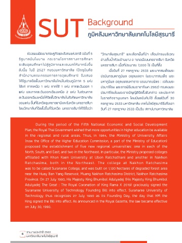 in the regional and rural areas. Thus, in 1984, the Ministry of University Affairs มหาวทยาลยเทคโนโลยสรนารเปน “1 ใน 9 มหาวทยาลยวจยแหงชาต”