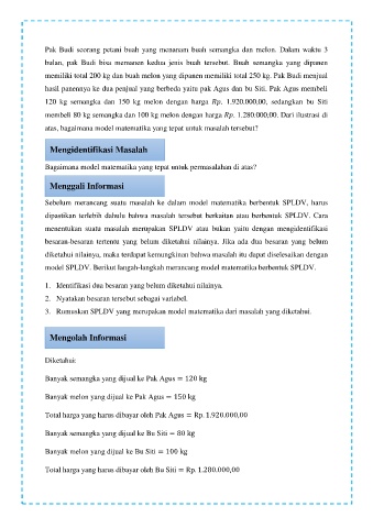 membeli 80 kg semangka dan 100 kg melon dengan harga . 1.280.000,00. Dari ilustrasi di