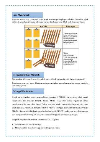 Untuk menyelesaikan suatu permasalahan kontekstual SPLDV, harus mengetahui model