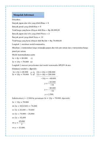 Misalkan: menyatakan harga semangka papan alas tulis per satuan dan menyatakan harga