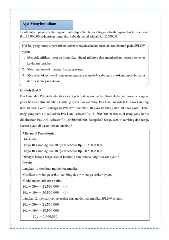 dan 30 ekor ayam, sedangkan Pak Ardi membeli 10 ekor kambing dan 10 ekor ayam. Total