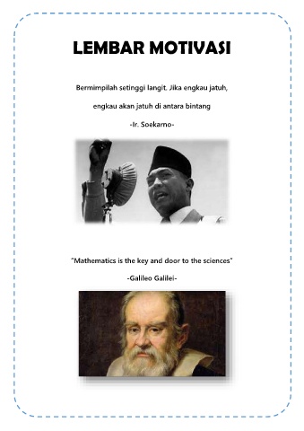 LEMBAR MOTIVASI Bermimpilah setinggi langit. Jika engkau jatuh, engkau akan jatuh di antara bintang -Ir. Soekarno- “Mathematics is the key and door to the sciences” -Galileo Galilei-