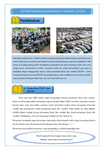 variabel dan penyelesaian sistem persamaan linear dua variabel. Pada bagian ini akan dibahas