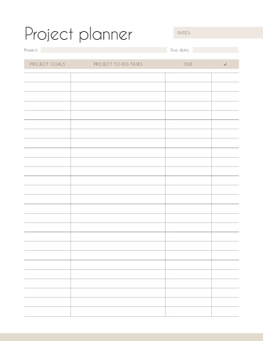 Project planner DATES: Project: Due date: PROJECT GOALS PROJECT TO-DO TASKS DUE √