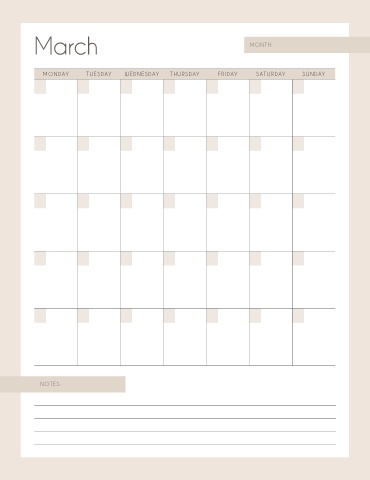 March MONTH: MONDAY TUESDAY WEDNESDAY THURSDAY FRIDAY SATURDAY SUNDAY NOTES: