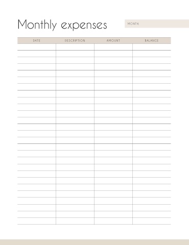 Monthly expenses MONTH: DATE DESCRIPTION AMOUNT BALANCE