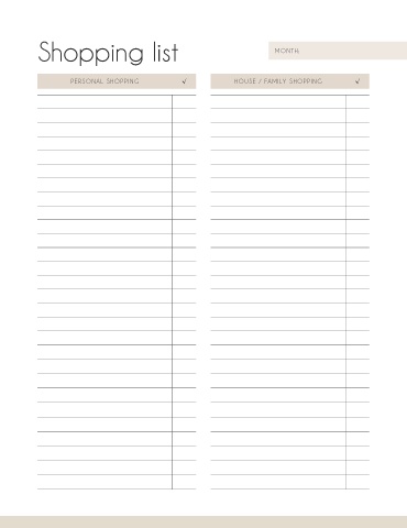 Shopping list MONTH: PERSONAL SHOPPING √ HOUSE / FAMILY SHOPPING √