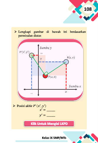 108 Lengkapi gambar di bawah ini berdasarkan permisalan diatas ′ Posisi akhir ’ , ′ ′ = _______ ′ = _______ Klik Untuk Mengisi LKPD Kelas IX SMP/MTs
