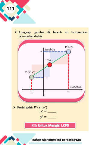 111 Lengkapi gambar di bawah ini berdasarkan permisalan diatas ′ Posisi akhir ’ , ′ ′ = _______ ′ = _______ Klik Untuk Mengisi LKPD Bahan Ajar Interaktif Berbasis PMR