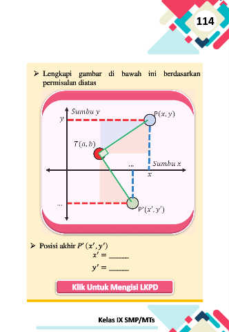114 Lengkapi gambar di bawah ini berdasarkan permisalan diatas ′ Posisi akhir ’ , ′ ′ = _______ ′ = _______ Klik Untuk Mengisi LKPD Kelas IX SMP/MTs
