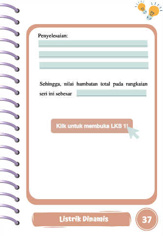 Penyelesaian: Sehingga, nilai hambatan total pada rangkaian seri ini sebesar Klik untuk membuka LKS 1! 37