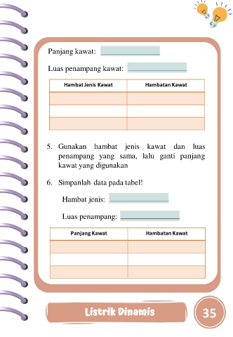 5. Gunakan            hambat        jenis kawat            dan     luas