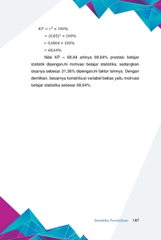 Nilai KP = 68,64 artinya 68,64% prestasi belajar
