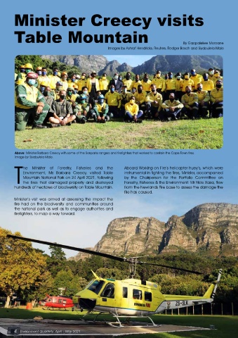 Above: Minister Barbara Creecy with some of the Sanparks rangers and firefighters that worked to contain the Cape Town fires.