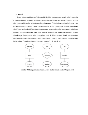 memiliki dosen pembimbing. Pada diagram E-R, sebuah relasi digambarkan dengan simbol