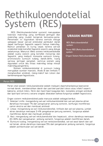 endotelial tidak bersifat fagositik seperti yang diduga Peran RES (Reticuloendotelial