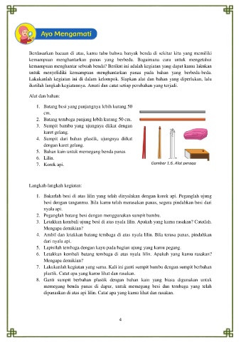 3. Letakkan kembali ujung besi di atas nyala lilin. Apakah yang kamu rasakan? Catatlah.