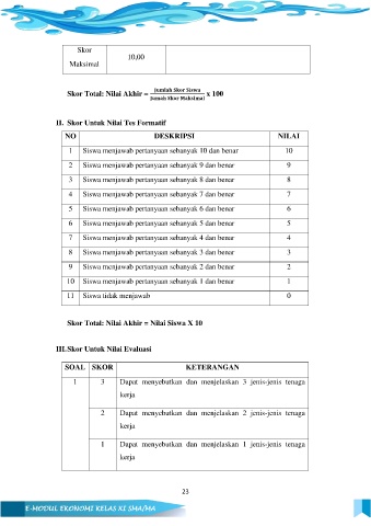 Skor Total: Nilai Akhir = Nilai Siswa X 10