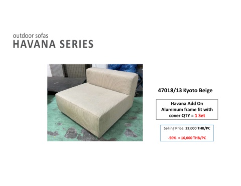 47018/13 Kyoto Beige Havana Add On Aluminum frame fit with cover QTY = 1 Set Selling Price: 32,000 THB/PC -50% = 16,000 THB/PC