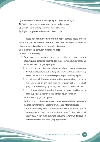Uji marshall dilakukan untuk berbagai tujuan antara lain sebagai: