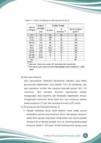 Tabel 11. Contoh perhitungan jumlah agregat benda uji
