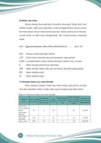 Tabel 23. Perkiraan Indeks Lalu Lintas Rendah