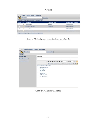 9 System Gambar 9.2: Konfigurasi Menu Content secara default Gambar 9.3: Menambah Content 74